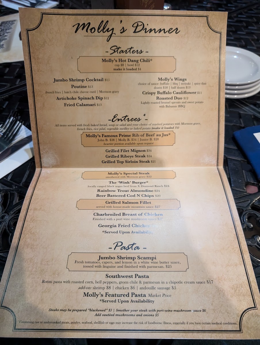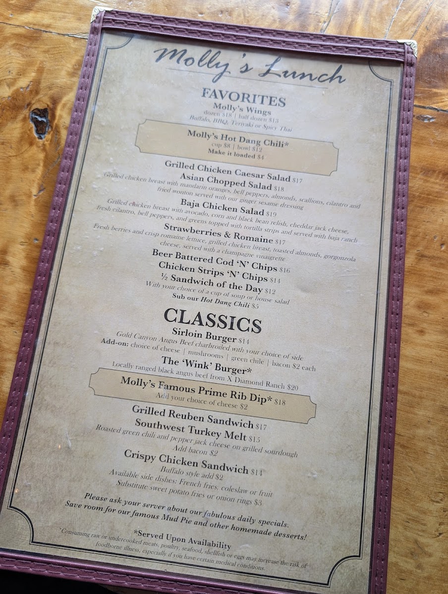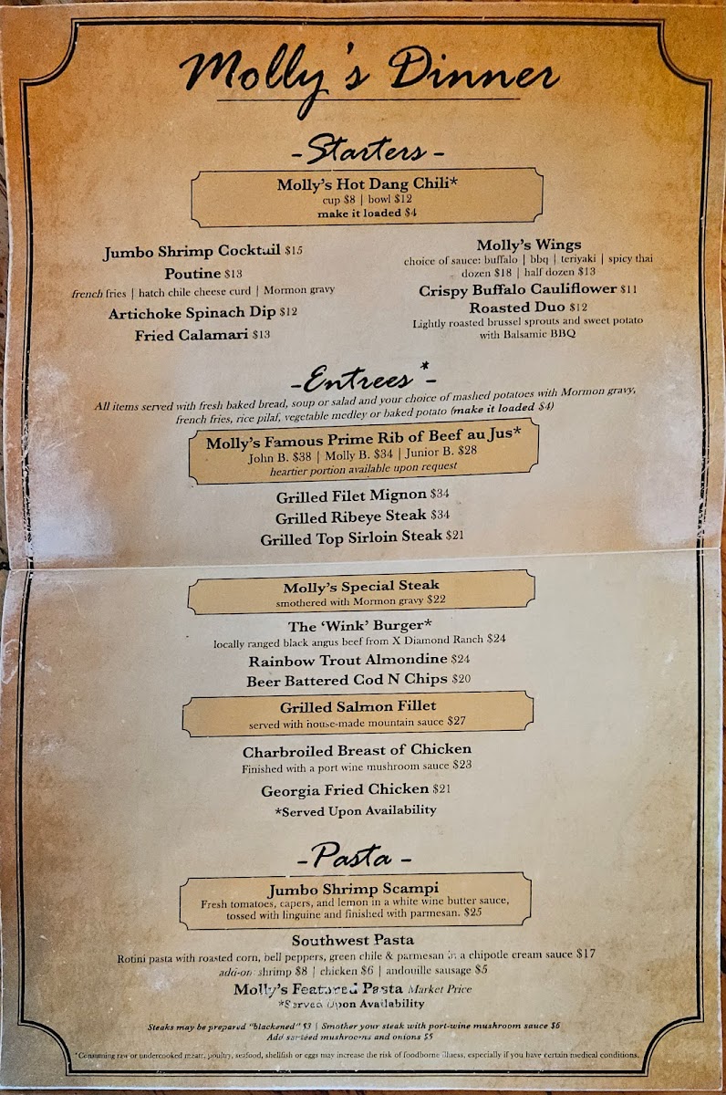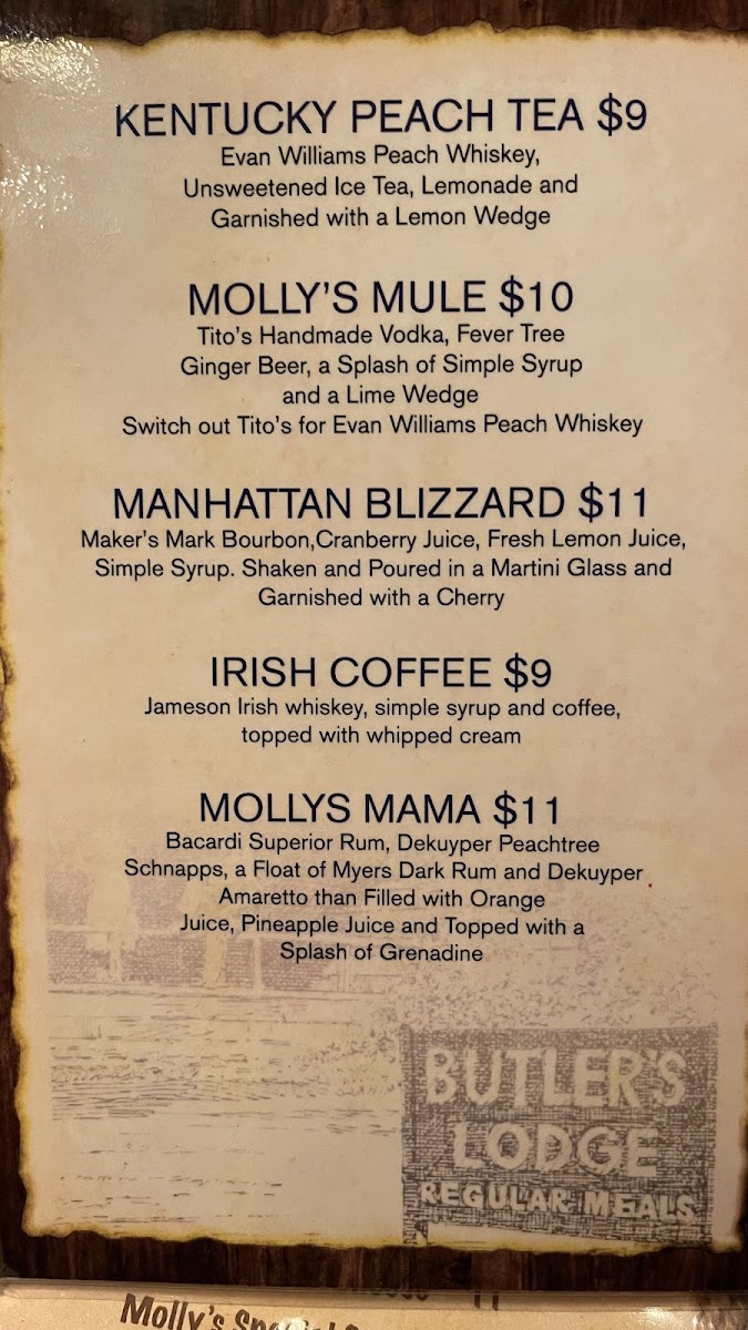 Molly Butler Lodge & Restaurant Menu