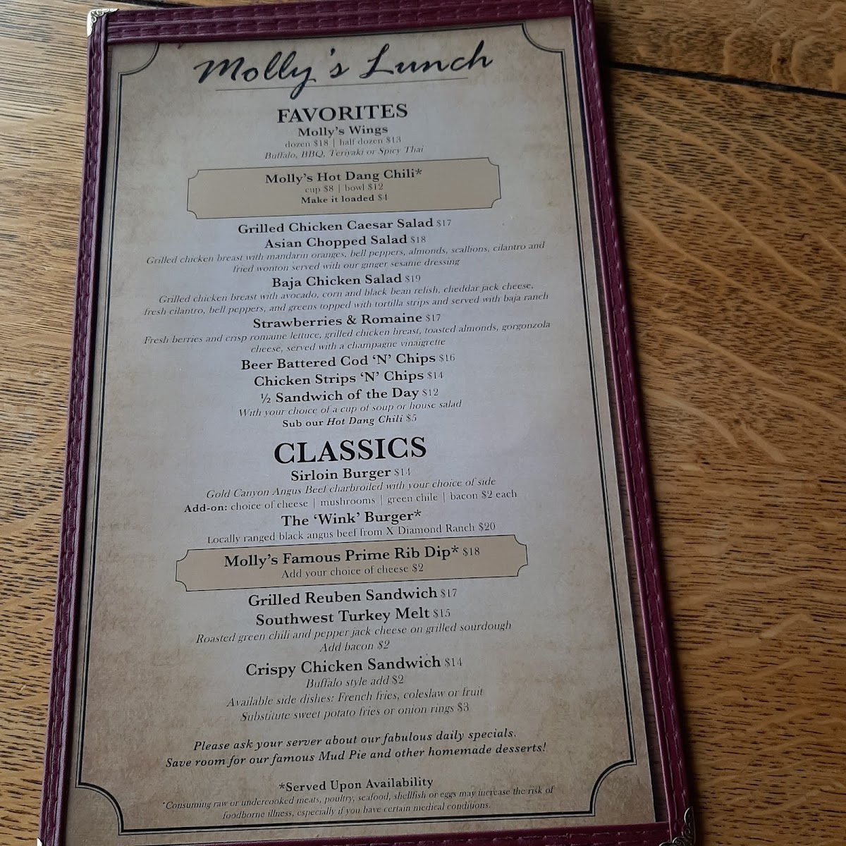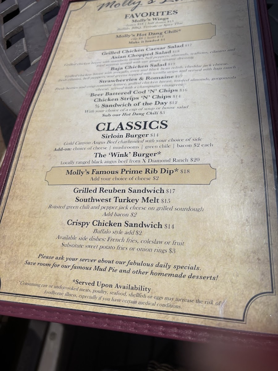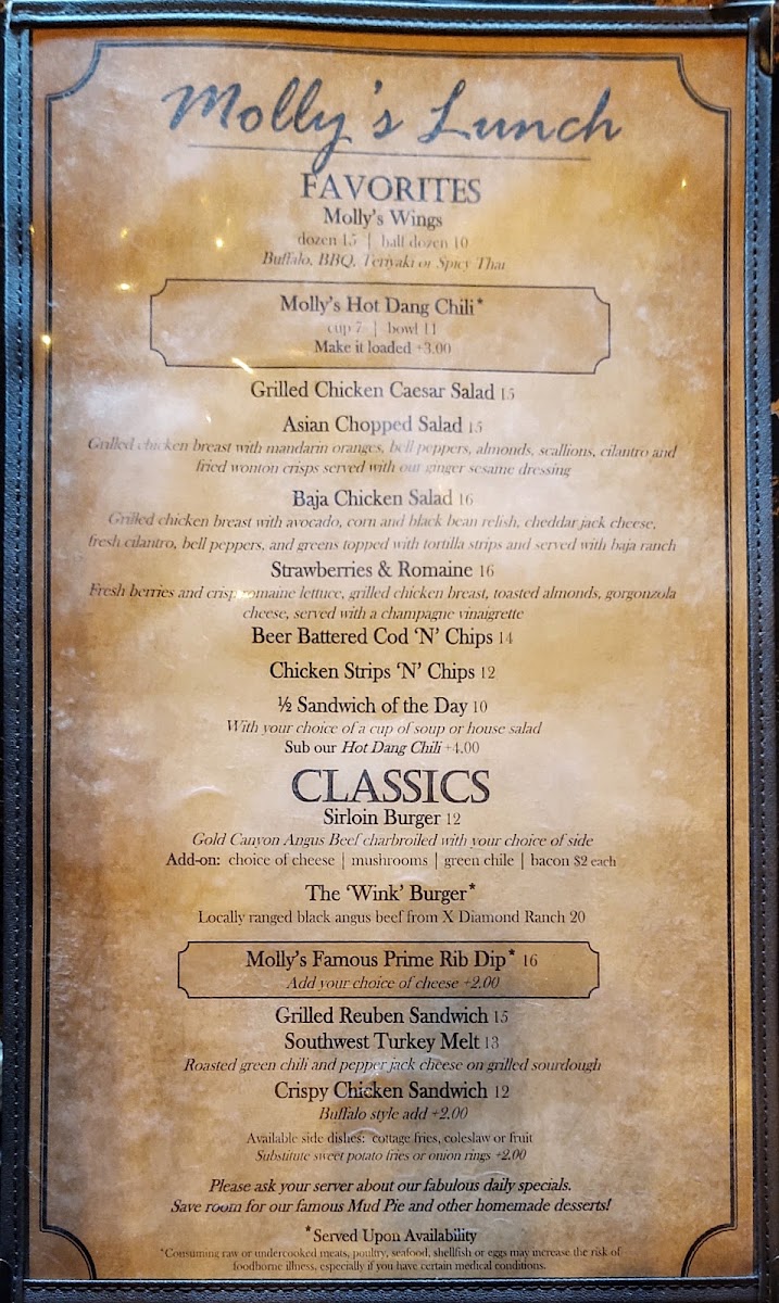 Molly Butler Lodge & Restaurant Menu